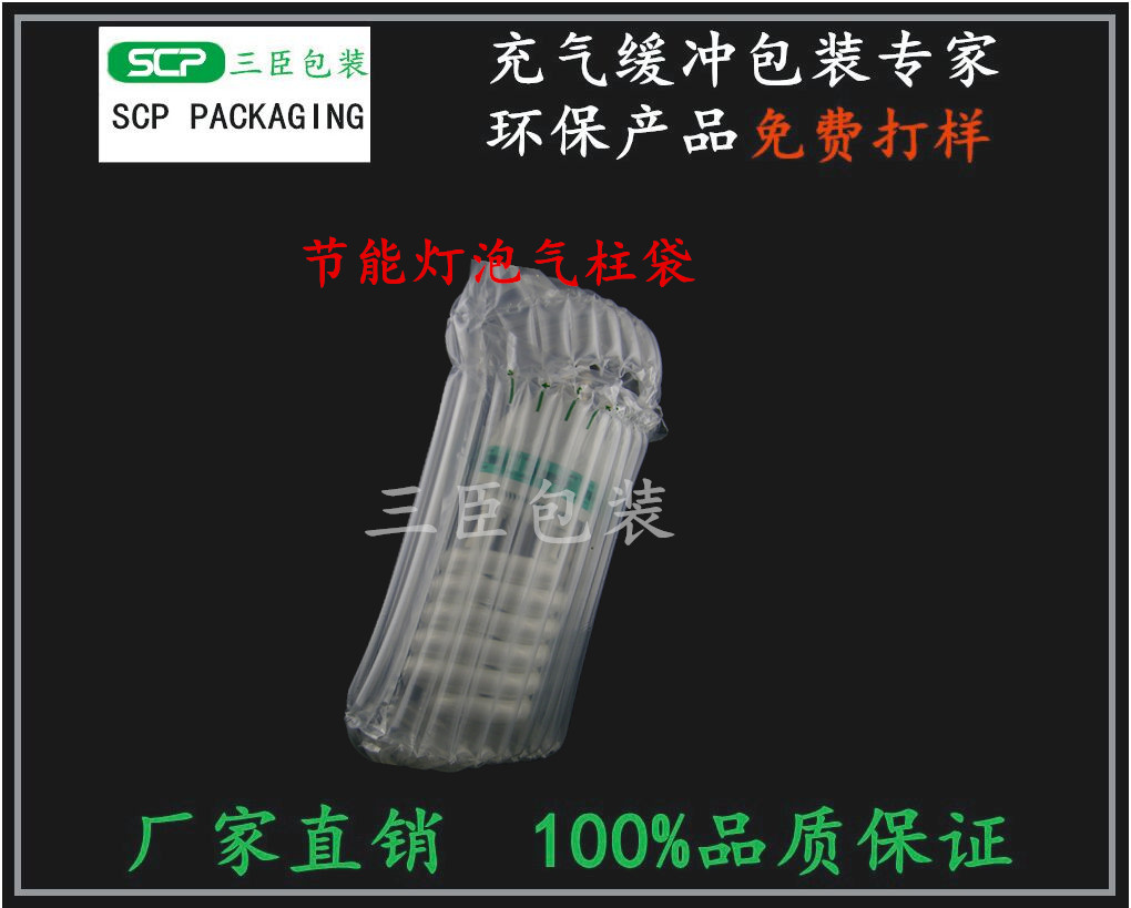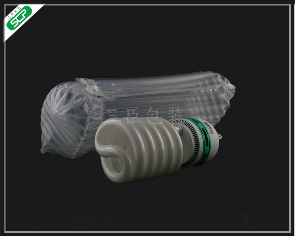 节能灯泡,是常用的一款灯具产品。普通的白炽灯光效大约在每瓦10流明左右,寿命大约在1000小时左右,而节能灯达到5000小时以上。作为易碎品,灯具生产厂家在包装节能灯泡时,传统包装主要采用塑料、纸塑、瓦楞纸卡(qia),缓冲性能差,破损率高。昆山上海苏州江苏灯具气柱袋生产厂家三臣包装的灯具气柱袋,主要采用L型、U型、Q型设计,是一款新型缓冲包装材料,采用共挤膜热压加工,利用空间缓冲原理来保护灯具产品。原材料由PA/PE组成,绿色环保可分解,未充气前不占用仓储空间,得到了国内外灯具厂家的广泛应用。