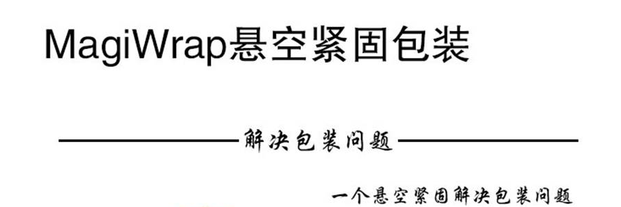 MagiWrap悬空包装一款具有创新思维的保护包装设计,采用高强度、高弹性薄膜来定位物品,保证被包装物在整个运输途中反复跌落后免受损坏。